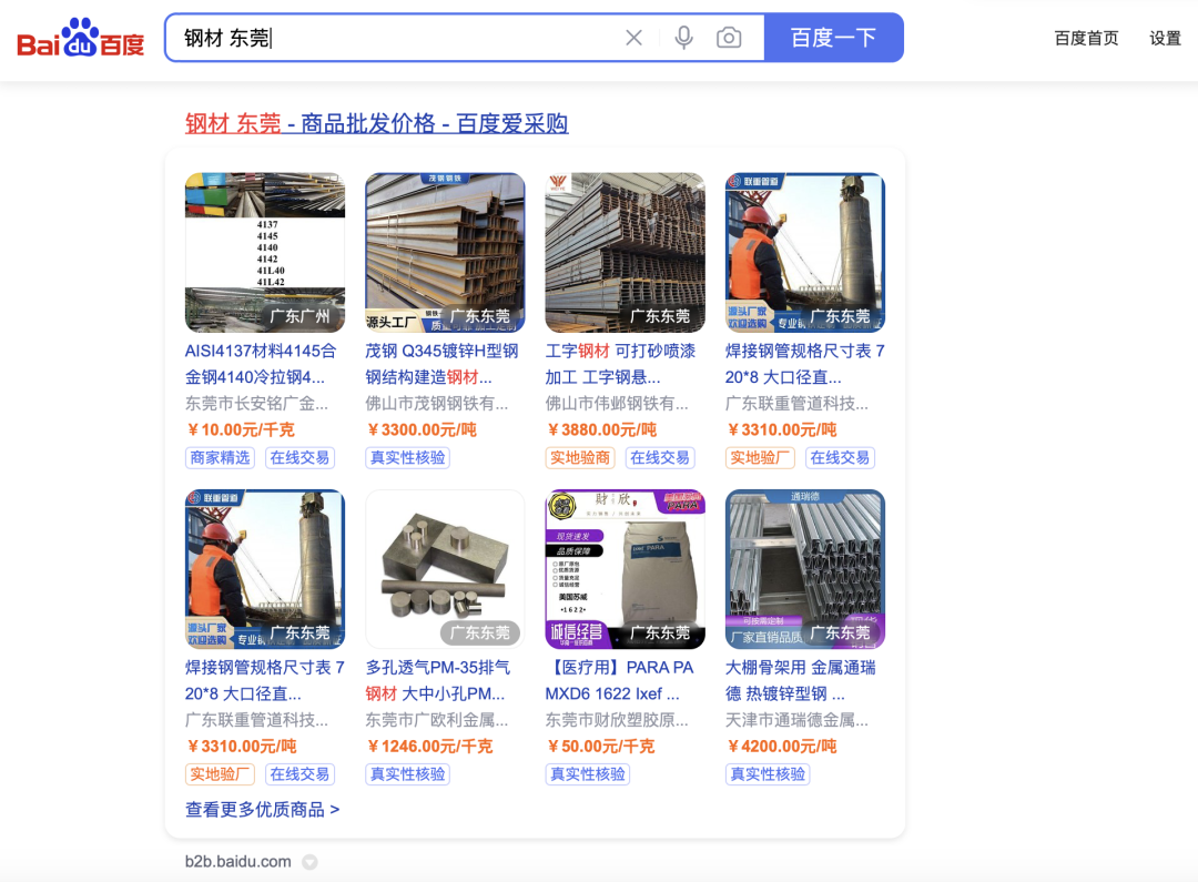“入驻爱采购的第2周,我就拿到了第1笔订单,我当时都惊讶了,这笔订单成交量有5w+。”新宝井钢材郭总说,百度海量用户在搜索钢材相关信息时,都能搜索到新宝井钢材的线上店铺入口,新宝井钢材的订单量在入驻爱采购后直线上升,成交量每个月都增加近三百单。而且在平台上公对公交易,资金流动更安全,用户也更信任。